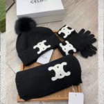 Stay cozy and chic with the Celine Ribbed Wool Scarf Set, a luxurious winter accessory trio that includes a beanie hat, scarf, and gloves, each adorned with the signature Celine patch logo. Crafted from premium ribbed wool, this elegant set offers warmth, comfort, and timeless Parisian style. The beanie features a classic fit with a fluffy pom-pom for a playful touch, while the scarf is generously sized for versatile styling. The gloves complete the ensemble, offering soft, snug coverage with refined branding on the back of each hand. Perfect for gifting or elevating your own winter wardrobe, this Celine set combines function and fashion in one cohesive design. A must-have for cold-weather luxury lovers.