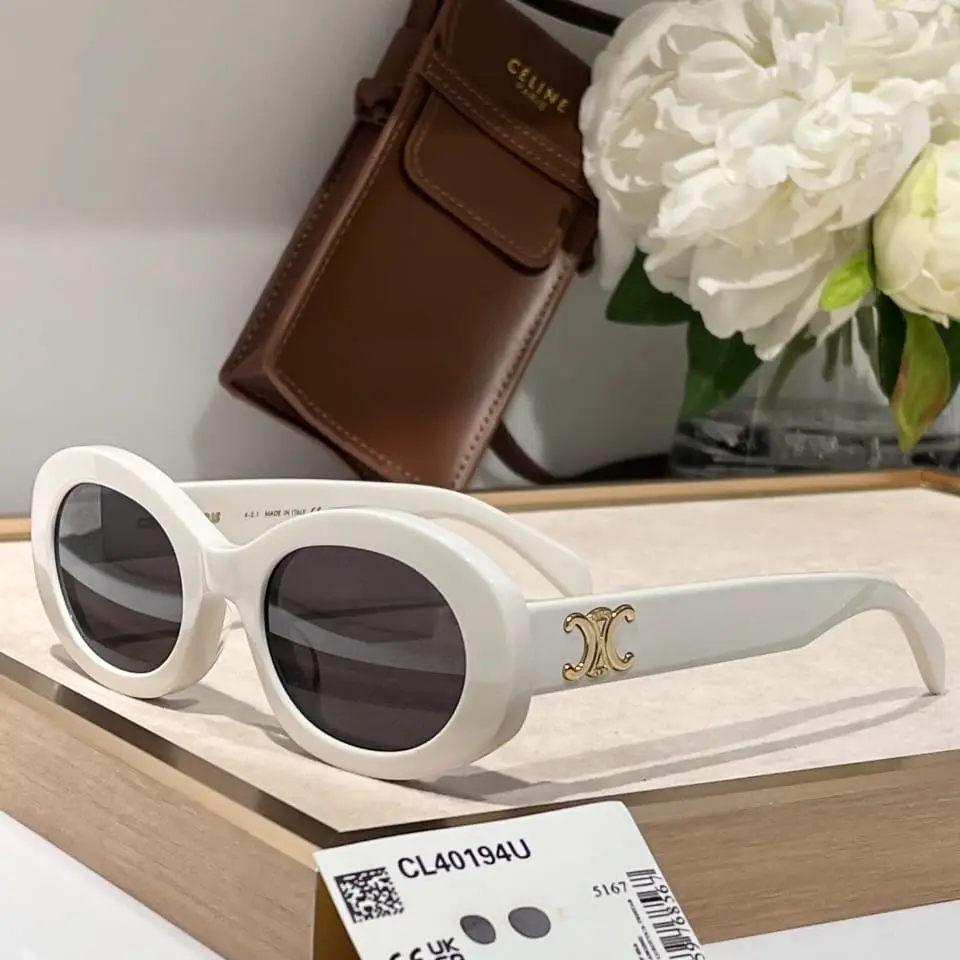 Celine Triomphe CL40194U Milky White Sunglasses – Oval Frame with Grey Dark Lenses in Dubai UAE