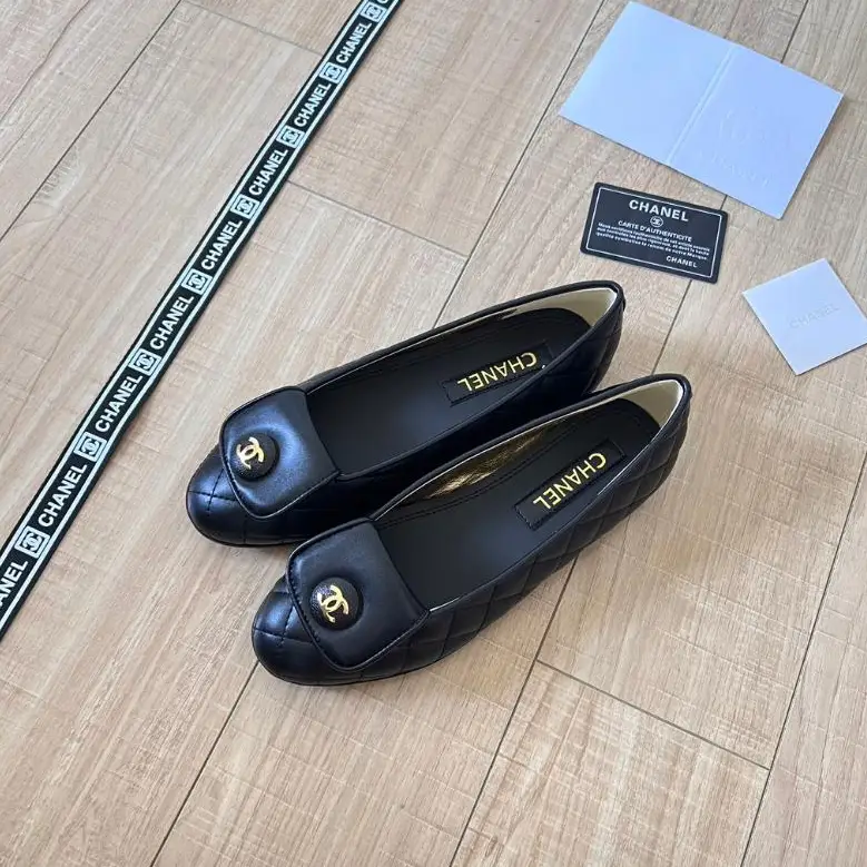 Chanel Black Leather Ballet Flats – Quilted Design with Iconic CC Logo in Dubai UAE