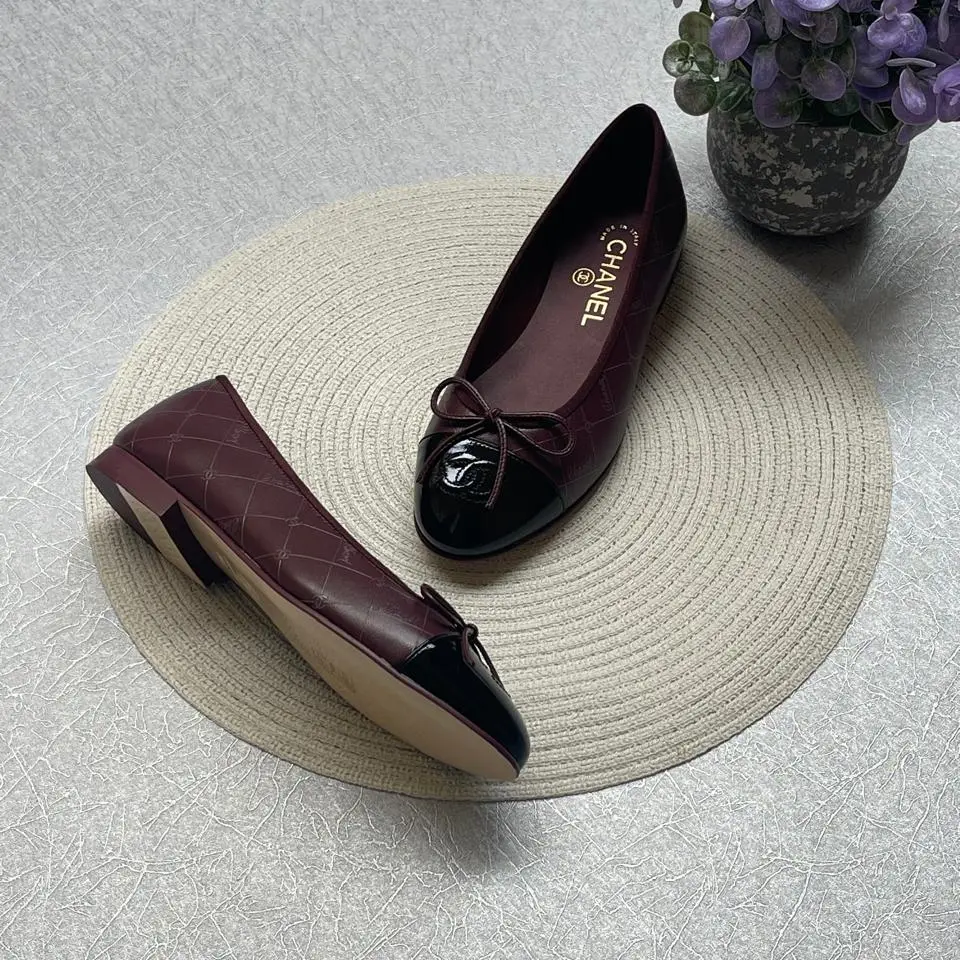 Timeless elegance meets Parisian charm in the Chanel Burgundy/Black Patent and Leather CC Bow Cap Toe Ballet Flats. Crafted from rich burgundy leather with sleek black patent cap toes, these flats embody classic Chanel sophistication. The delicate bow detail and signature interlocking CC logo on the toe add just the right amount of luxury flair, making them a go-to for refined, everyday chic.
