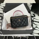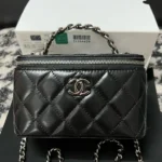 The Chanel Classic Vanity Bag is a chic and compact accessory, beloved for its signature quilted leather design, elegant chain strap, and instantly recognizable interlocking CC logo. This luxurious piece is crafted from high-quality leather and is available in a variety of sizes and colors, making it a versatile choice for both everyday wear and special occasions. Compact yet functional, it’s designed to hold essentials like makeup, keys, and a phone—perfect for those who value both style and practicality.