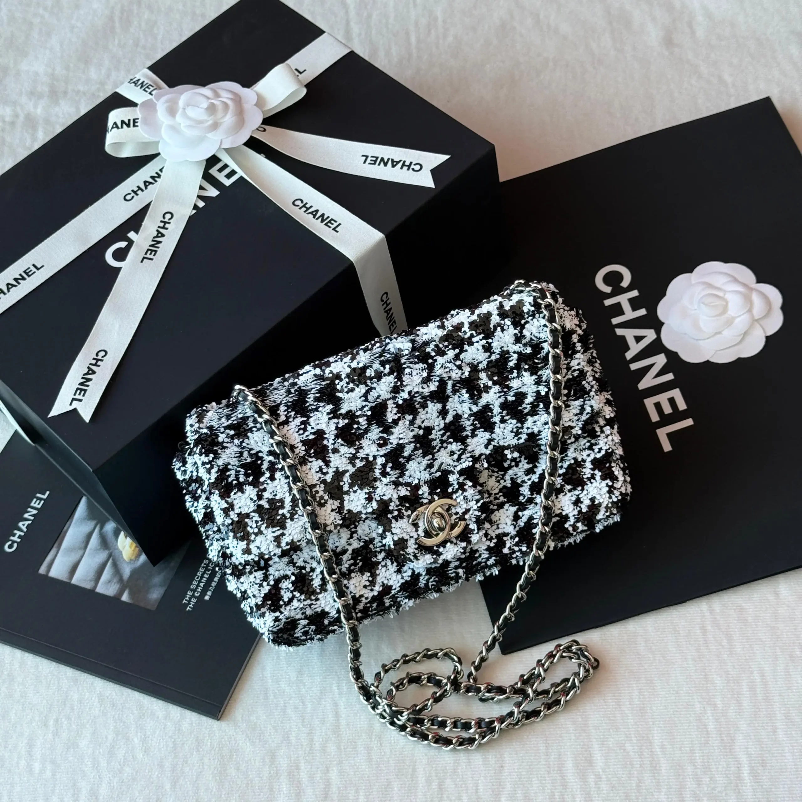 Chanel Mini Classic Bag in Black & White Houndstooth with Jewel and Pearl Embellishments in Dubai UAE