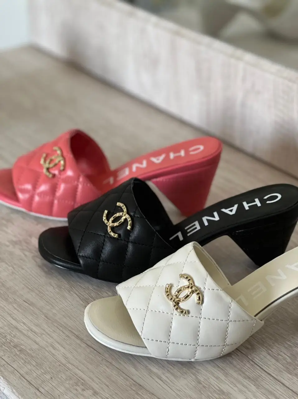 Chanel Quilted Lambskin Cone Heel Mule Slide Sandals in Dubai UAE