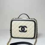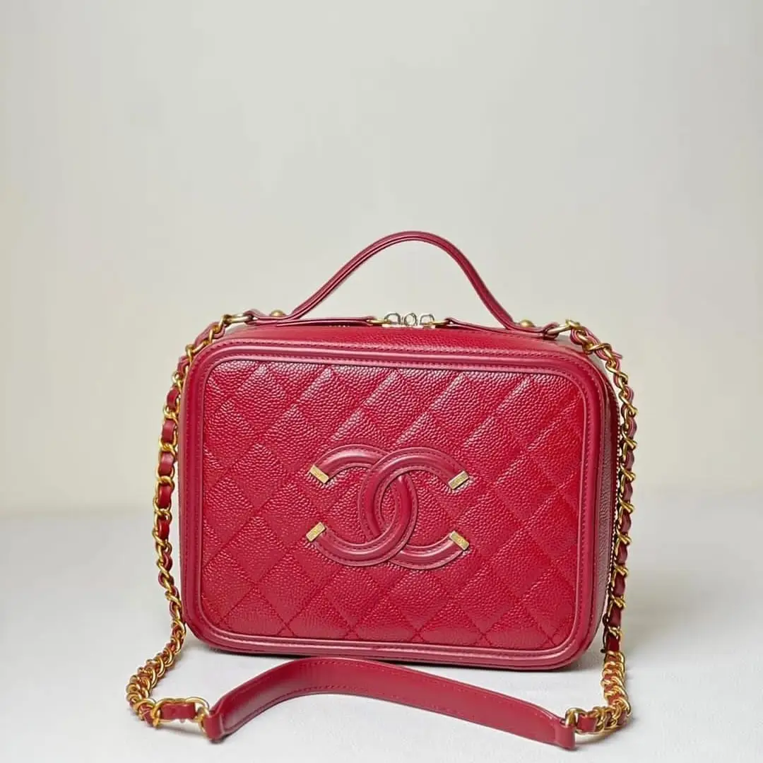 Equipped with a top handle and a classic leather-interwoven chain strap, the CC Filigree Vanity Case offers versatility, allowing it to be worn by hand, over the shoulder, or crossbody. The interior is thoughtfully designed with compartments to organize items neatly, making it not just stylish but also functional. A favorite among Chanel enthusiasts and fashion collectors, this piece is a timeless addition to any luxury handbag collection.