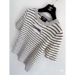 Chanel Striped Short-Sleeved T-Shirt – Cotton Top with Logo Oval Patch in Dubai UAE