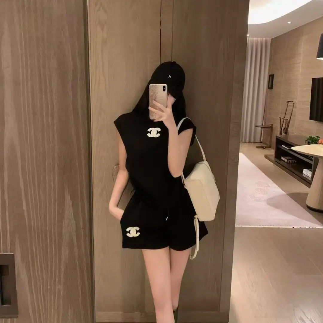 Chanel Two-Piece Lounge Set with Iconic Logo – Designer Top and Shorts in Dubai UAE