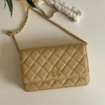 The Chanel Wallet on Chain (WOC) is a beloved classic in the world of luxury handbags, cherished for its compact size, elegance, and versatility. Since its debut in 1997, the WOC has been a cornerstone of Chanel’s mini bag collection, offering a perfect blend of style and function. This model features a sophisticated light brown quilted leather design, highlighting Chanel’s signature craftsmanship and timeless appeal. Ideal for both day-to-night wear, the WOC is a must-have accessory for fashion enthusiasts seeking a blend of practicality and luxury.