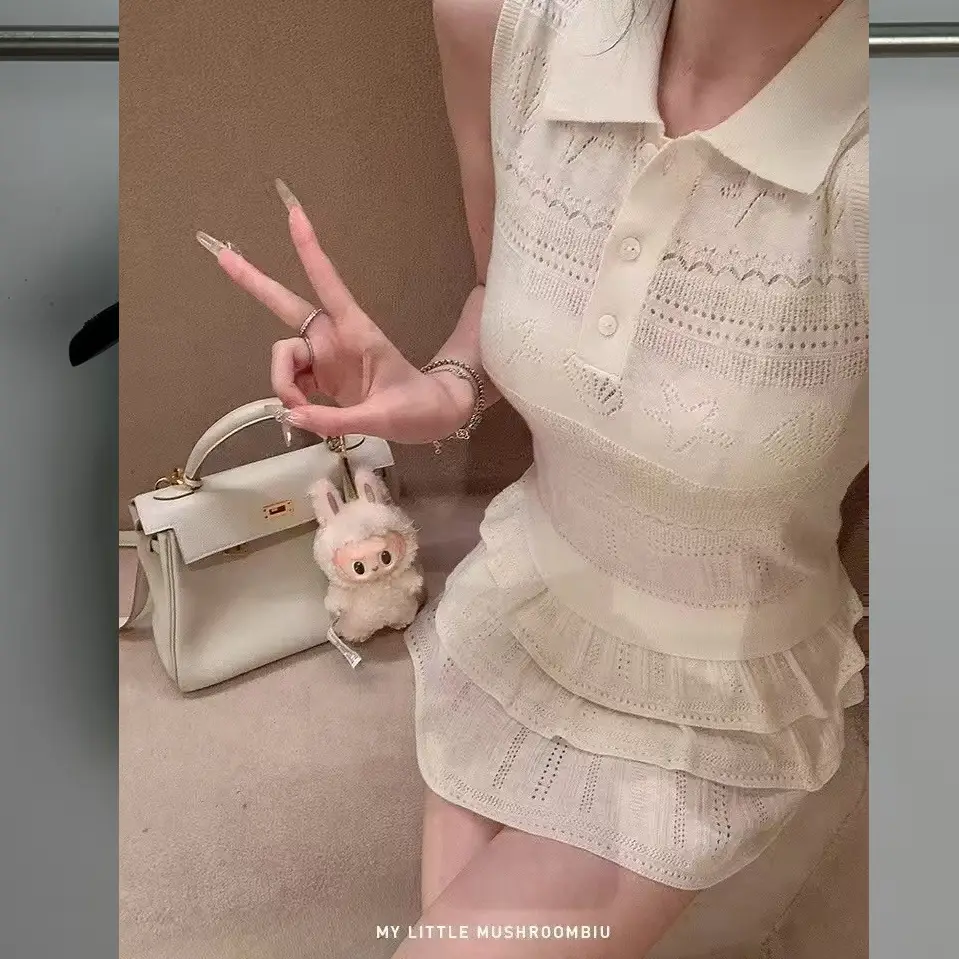 Chanel White Sleeveless Top & Ruffled Skirt Set – Elegant Designer Two-Piece Outfit in Dubai UAE