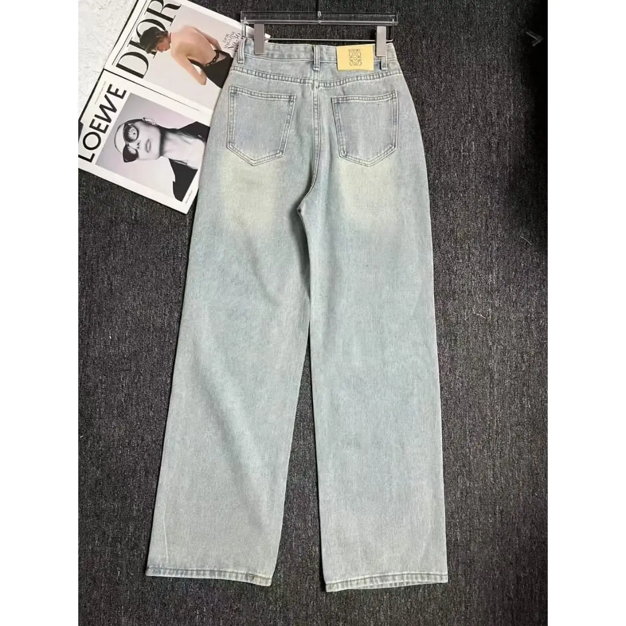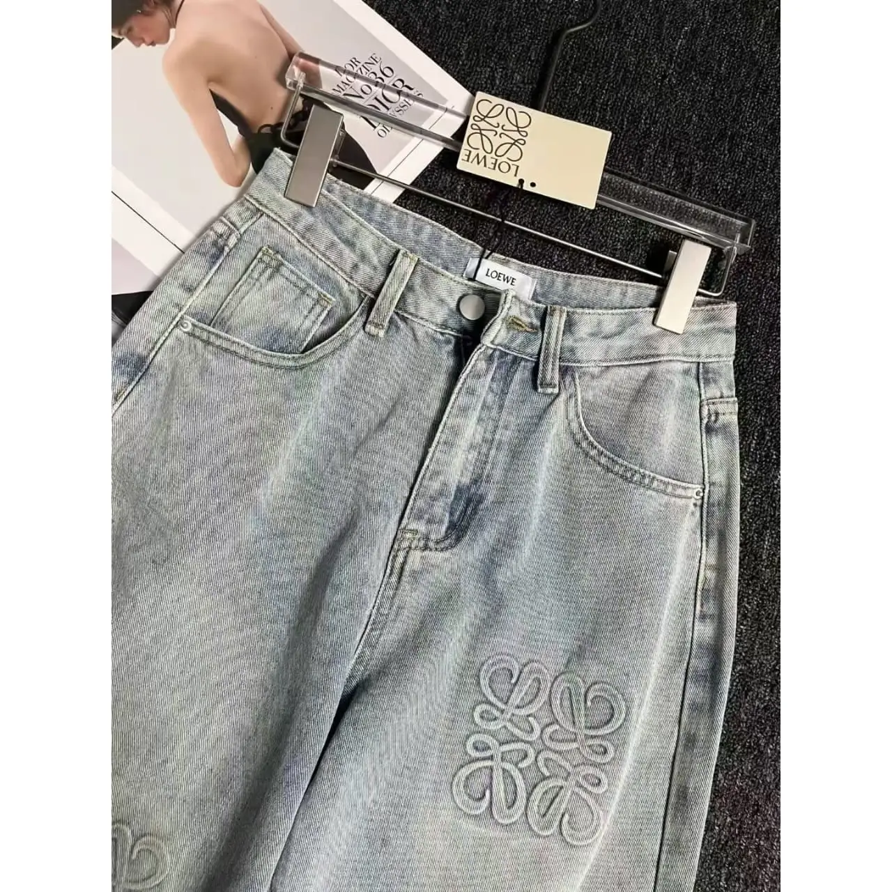 The standout detail is the embroidered Loewe Anagram logo, a signature mark of the Spanish fashion house, adding subtle designer appeal to the overall minimalist design. The loose fit offers breathable ease, while the high-end craftsmanship ensures durability and structure. Whether styled with sneakers and a tee or elevated with boots and a blazer, these jeans bring together casual ease and refined fashion for everyday luxury.