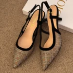 Step into refined elegance with the Christian Dior Oz Mules, a sophisticated blend of iconic design and modern flair. These standout shoes feature intricate J’Adior embroidery in cotton, beautifully accented with sparkling strass crystals for a luxurious finish. The sleek pointed toe adds a touch of sharp elegance, while the adjustable straps ensure a secure and tailored fit.