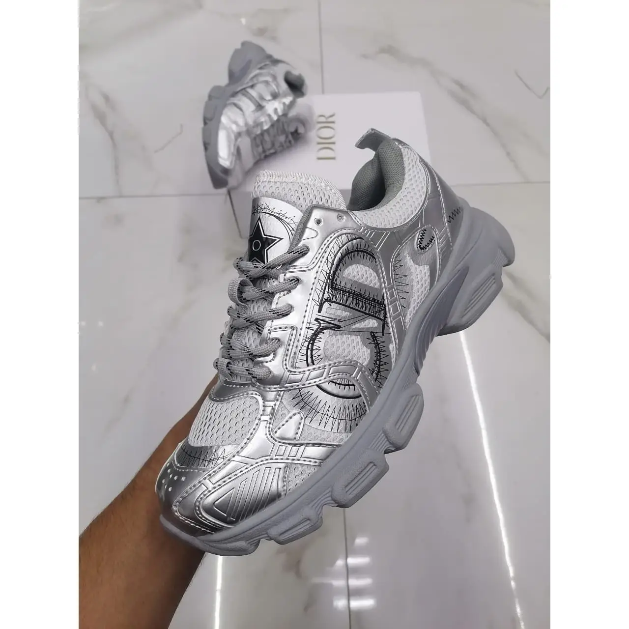 Dior Chrono Sneaker – Gray Mesh & Silver Laminated Panels with Dior Oblique Detailing in Dubai UAE