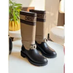 Dior D-Major Boots – Warm Taupe & Black Technical Fabric with Calfskin, CD Strap & Embroidered Logo in Dubai UAE