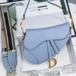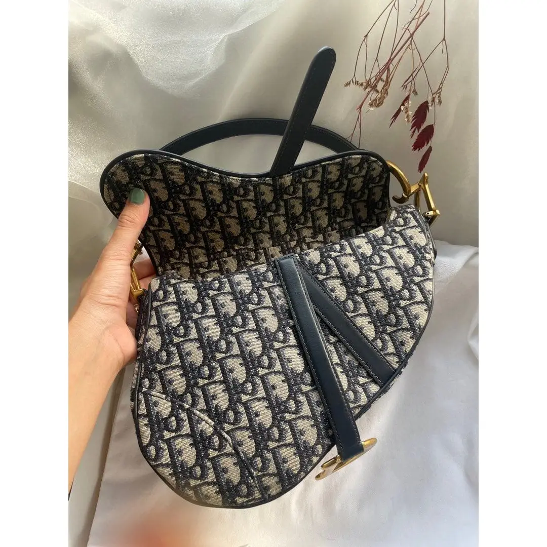 The Dior Mini Saddle Bag in Blue Dior Oblique Jacquard is a luxury fashion icon that blends timeless craftsmanship with modern elegance. Originally introduced in the late 1960s and revived for today’s trendsetters, this bag showcases the signature Dior Oblique pattern, woven from over 9,700 yarns to create a dense, weighty texture that exudes sophistication. Its distinctive saddle silhouette and bold “D” stirrup magnetic clasp pay homage to equestrian style, while the symmetrical jacquard design on both front and back ensures a polished finish from every angle. Compact yet eye-catching, this mini bag is the perfect statement accessory for refined daily wear or elevated evening looks.