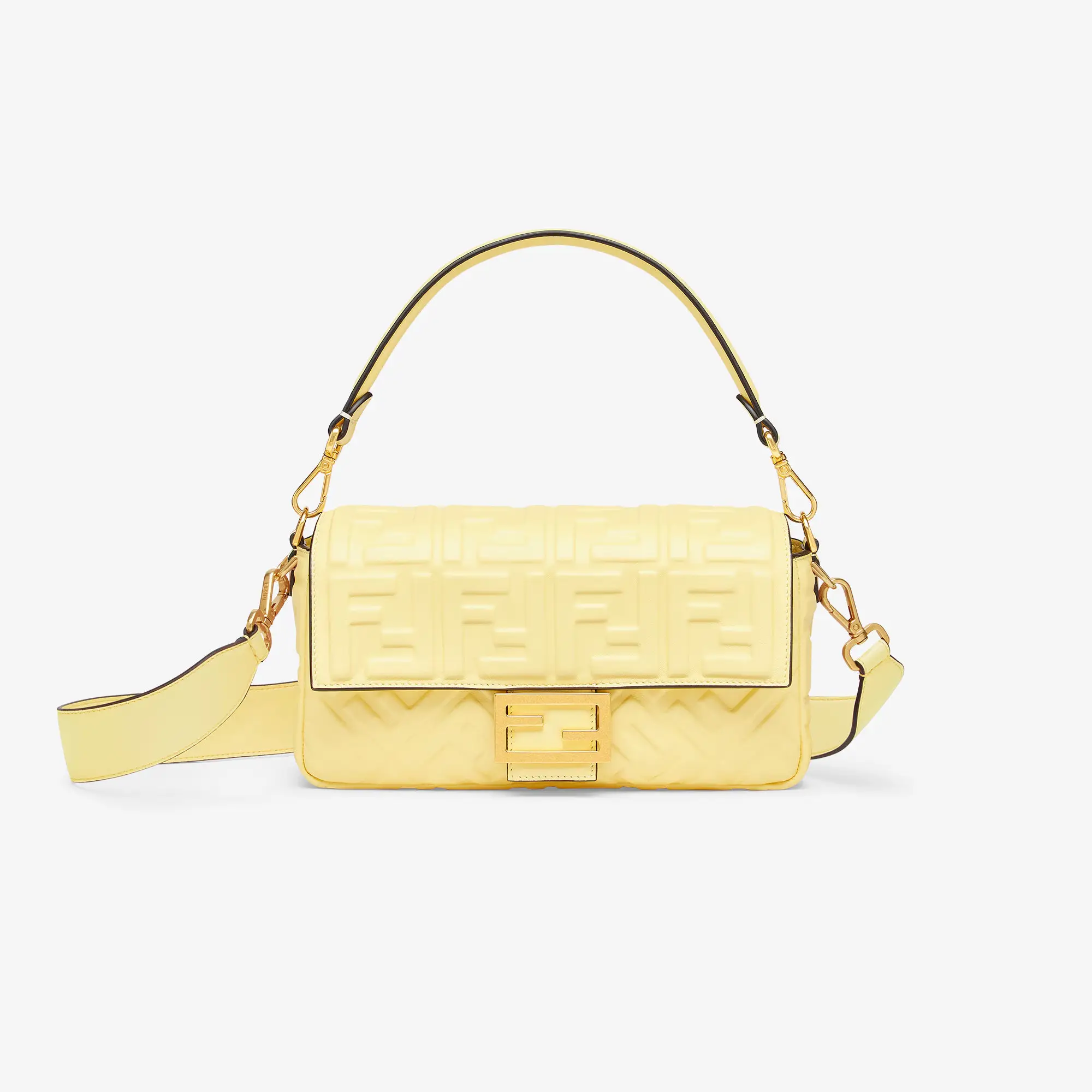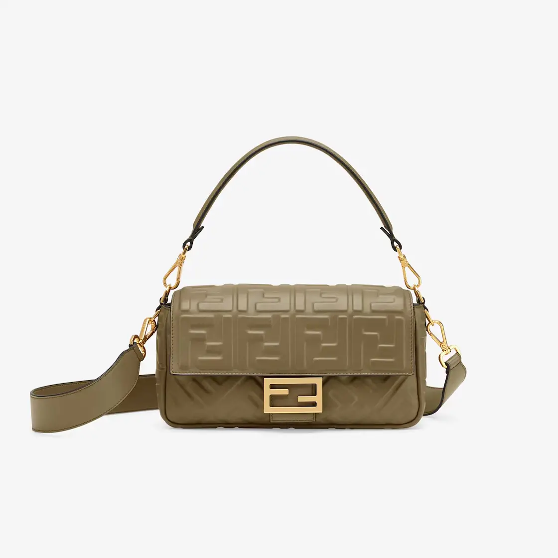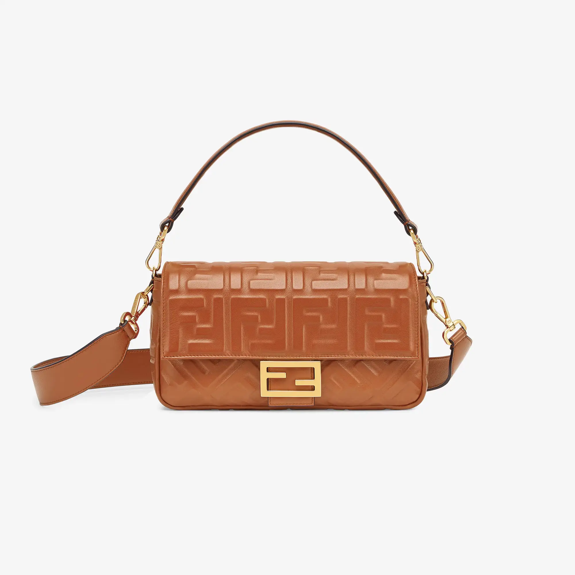 Discover understated luxury with the Fendi Baguette Nappa Leather Bag, an elegant take on the iconic silhouette that redefined designer handbags. Expertly crafted from buttery-soft nappa leather, this timeless piece features the signature FF logo clasp, a sleek flap closure, and a perfectly structured body that transitions effortlessly from day to night. The smooth leather finish offers a sophisticated look, while the adjustable and removable strap provides versatile styling—wear it as a shoulder bag, crossbody, or chic clutch.