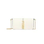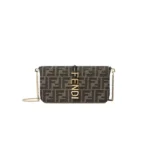 Designed for both style and practicality, this wallet on chain includes multiple compartments for cards, cash, and essentials. The gold-tone hardware and signature twist-lock closure add an elegant touch to its minimalist design, ensuring that this wallet remains an enduring piece in your collection. Whether used as a chic crossbody or sleek clutch, the Fendi Fendigraphy Wallet On Chain offers functional luxury for any occasion.