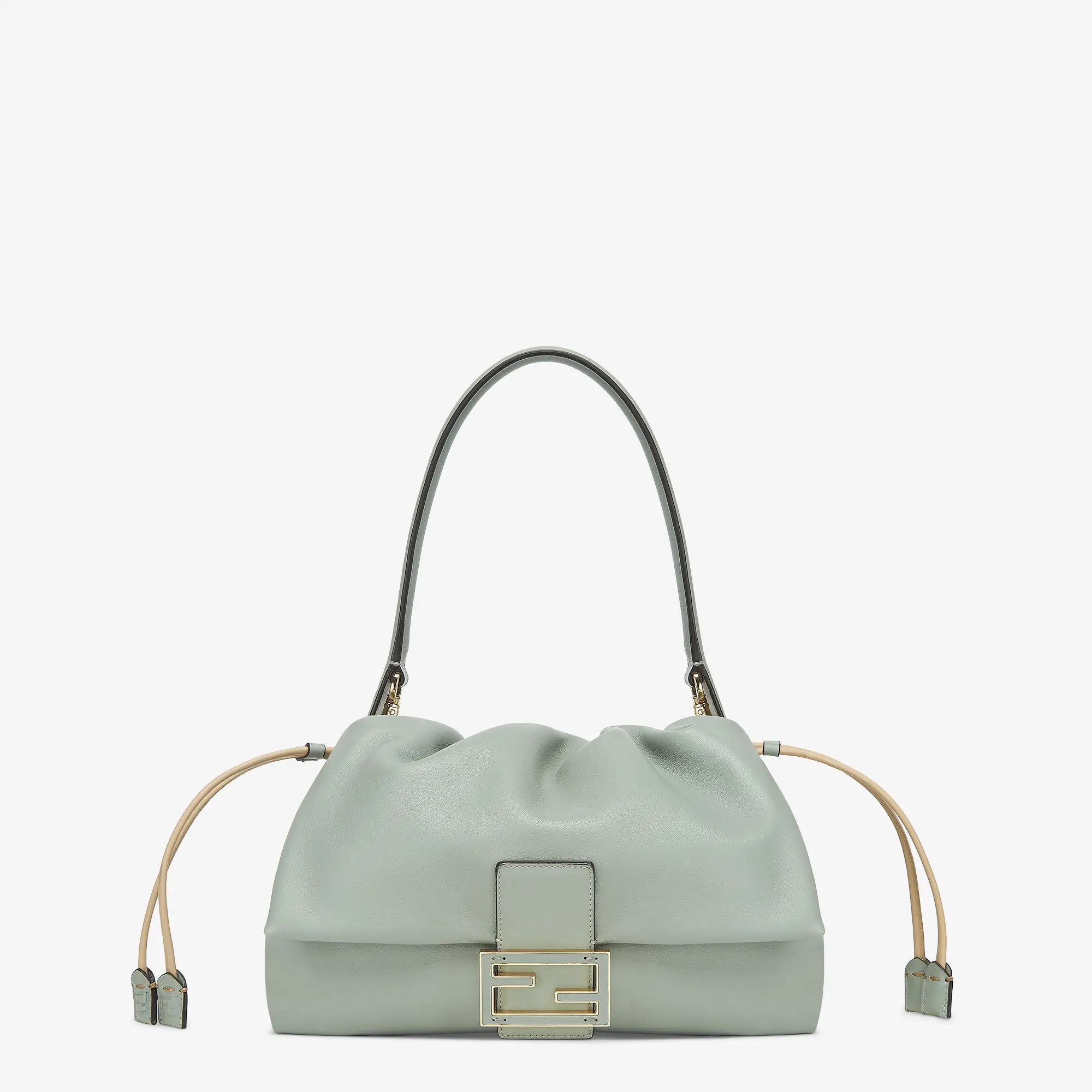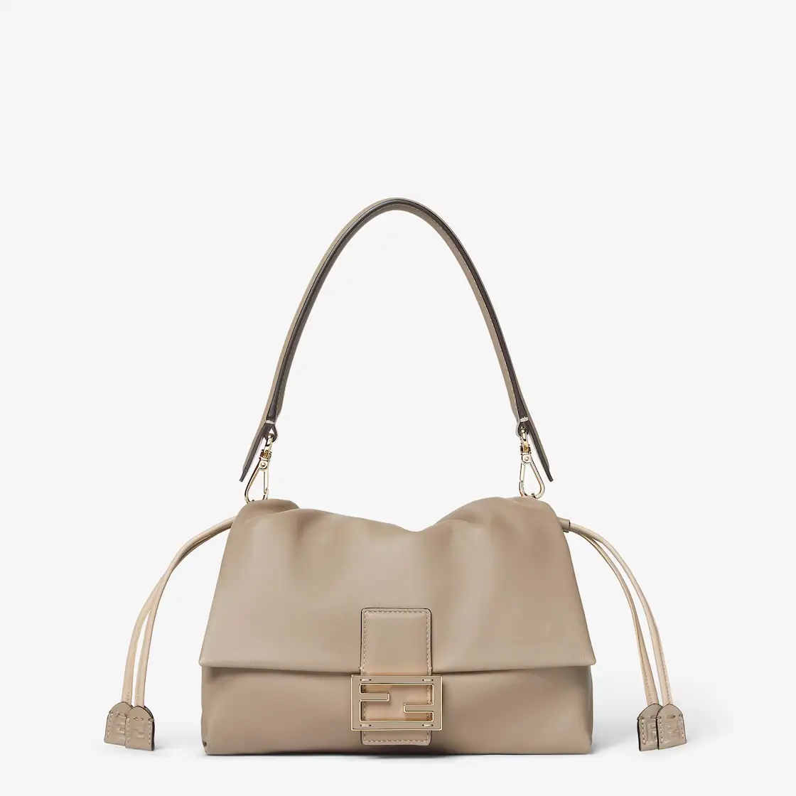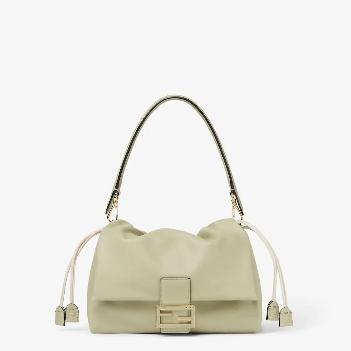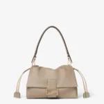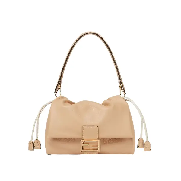 The bag features a spacious interior lined with tonal fabric, perfect for carrying daily essentials without compromising on style. A top handle and adjustable, detachable shoulder strap allow for multiple styling options—carry it by hand, wear it over the shoulder, or style it crossbody for a more relaxed look. The Fendi Mamma Baguette in Pale Nappa is a must-have investment piece, combining heritage design with modern luxury.