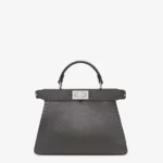 Refined elegance meets artisanal excellence in the Fendi Peekaboo ISeeU Small Selleria Bag, meticulously handcrafted in Dove grey Roman leather with an astounding 1,254 hand-sewn topstitches. This iconic silhouette is reimagined with a softer structure while preserving its signature dual interior compartments and twist-lock closures. The tonal stitching and premium Selleria leather highlight Fendi’s dedication to timeless craftsmanship and understated luxury.