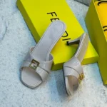 Placed on a crisp white surface with a yellow Fendi box in the background, these slides make a striking visual statement both in packaging and presentation. Ideal for summer outings, travel, or upscale lounging, they pair beautifully with everything from casual denim to minimalist dresses. Slip them on for a chic, branded finish to your warm-weather wardrobe.