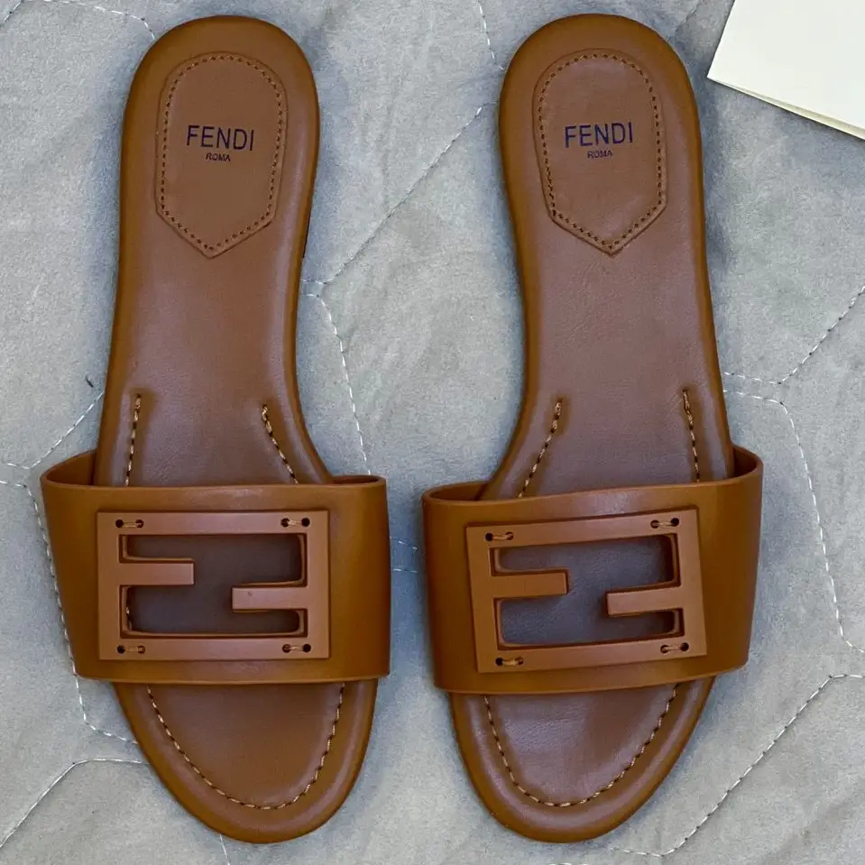 Fendi Women’s FF Logo Slides – Brown Leather with Iconic Karl Lagerfeld Design in Dubai UAE