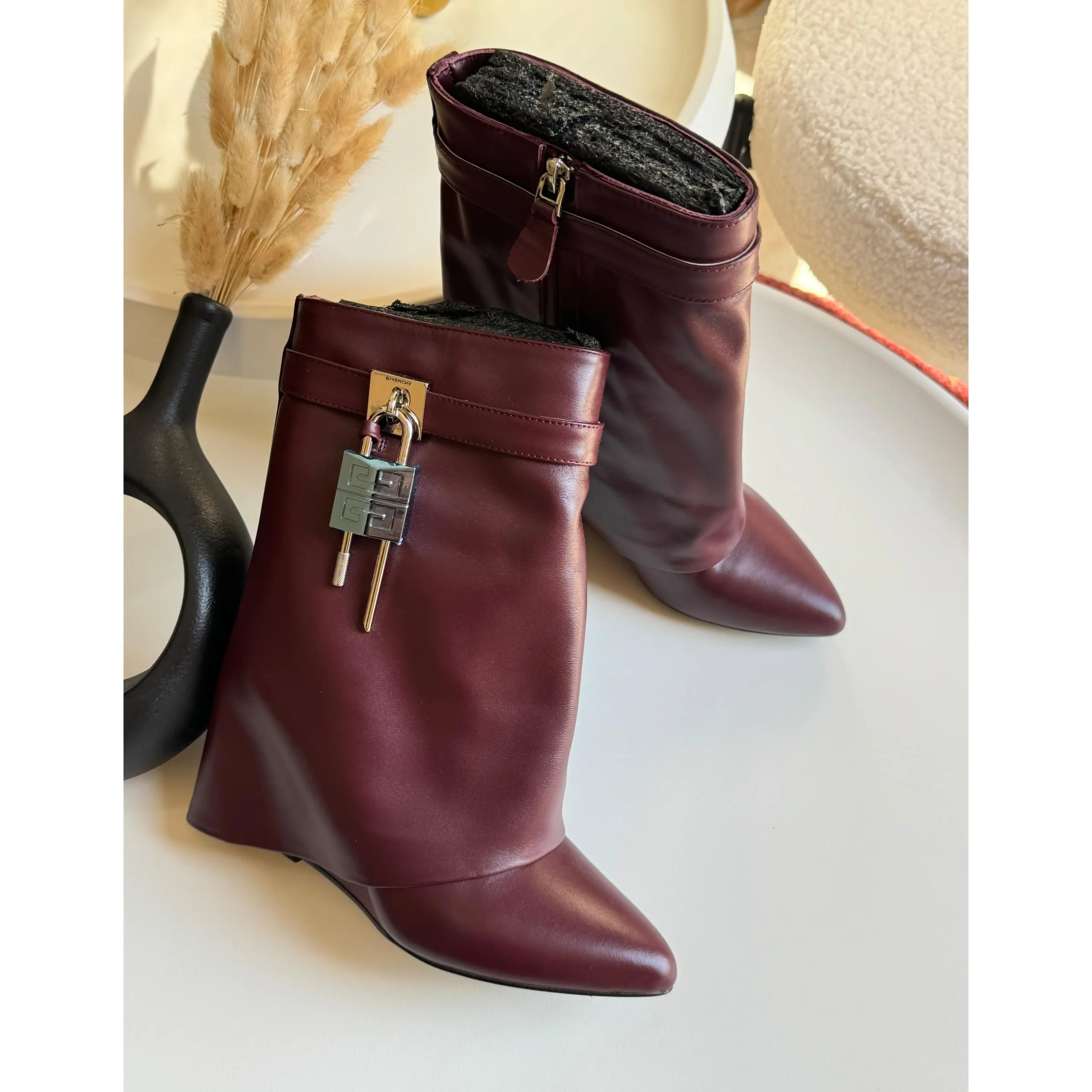 Givenchy Shark Lock Boots – Signature Leather Wedge Boots with Padlock and Clasp Detail in Dubai UAE