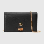 The Gucci Diana Wallet on Chain is a sophisticated and versatile accessory that blends classic elegance with modern functionality. Crafted from luxurious leather, this chic mini bag features the signature bamboo detail—a nod to Gucci’s rich heritage. The structured silhouette is enhanced by gold-toned hardware and a sleek flap closure, offering a refined yet contemporary aesthetic. Despite its compact size, this wallet on chain is thoughtfully designed with multiple card slots, a zip pocket, and ample space for essentials, making it perfect for both everyday wear and special occasions.