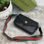 The Gucci Ophidia Pochette Women’s Bag is a sleek and sophisticated accessory that perfectly blends vintage charm with modern elegance. Crafted from GG Supreme canvas with luxurious leather trim, this compact yet stylish pochette features Gucci’s signature green and red Web stripe, a nod to the brand’s rich heritage. The gold-tone Double G logo adds a refined touch, making it an effortless statement piece for both casual and formal occasions.