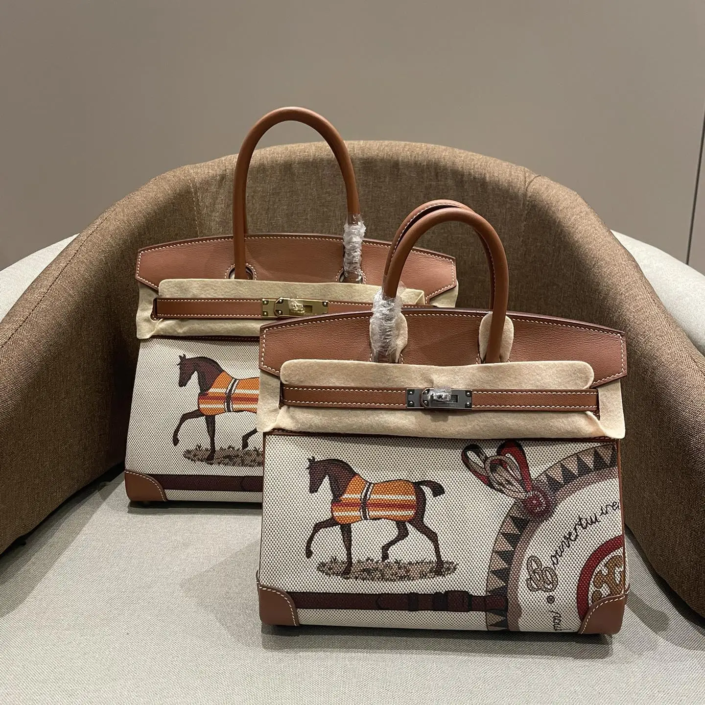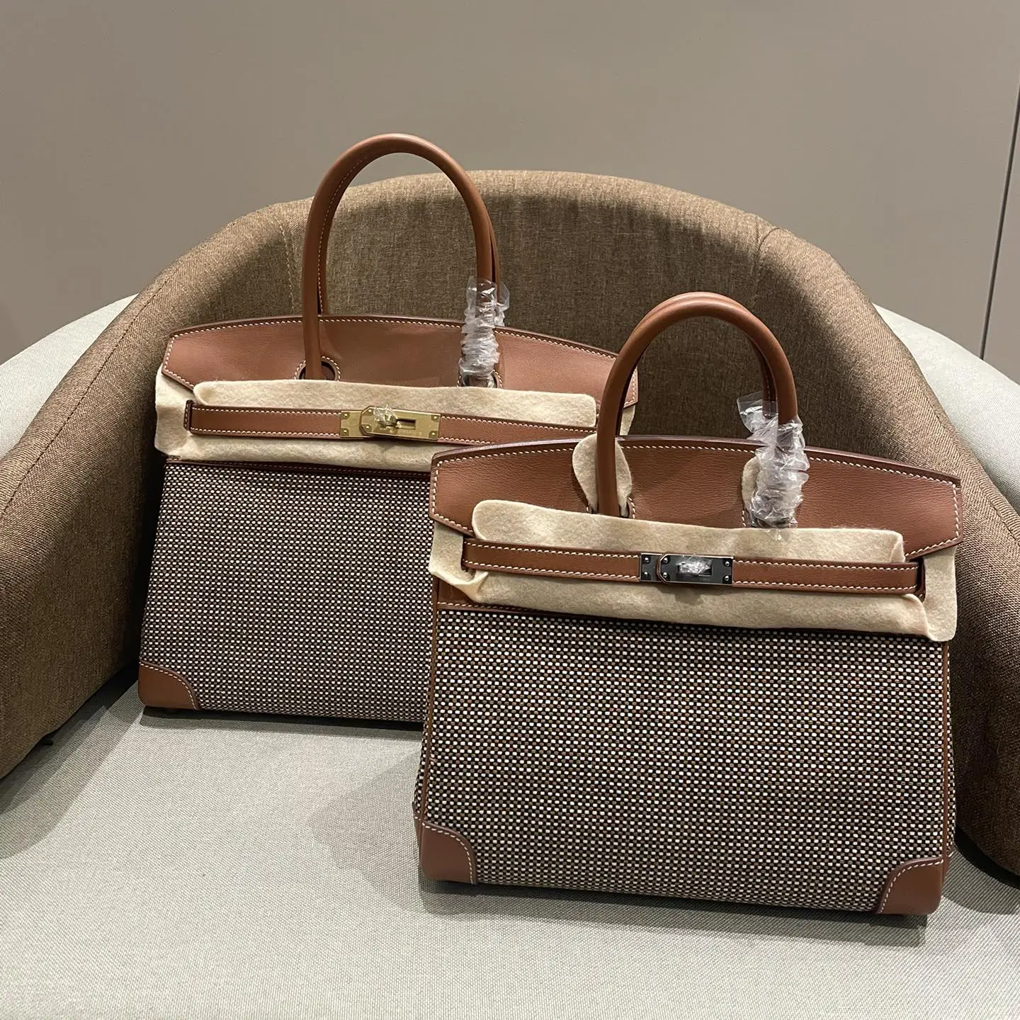 - Iconic Hermès Birkin silhouette in a unique canvas-leather combination