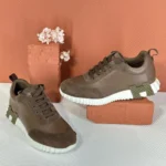 Hermès Bouncing Sneakers in Brown Leather & Suede – White & Green Rubber Sole in Dubai UAE