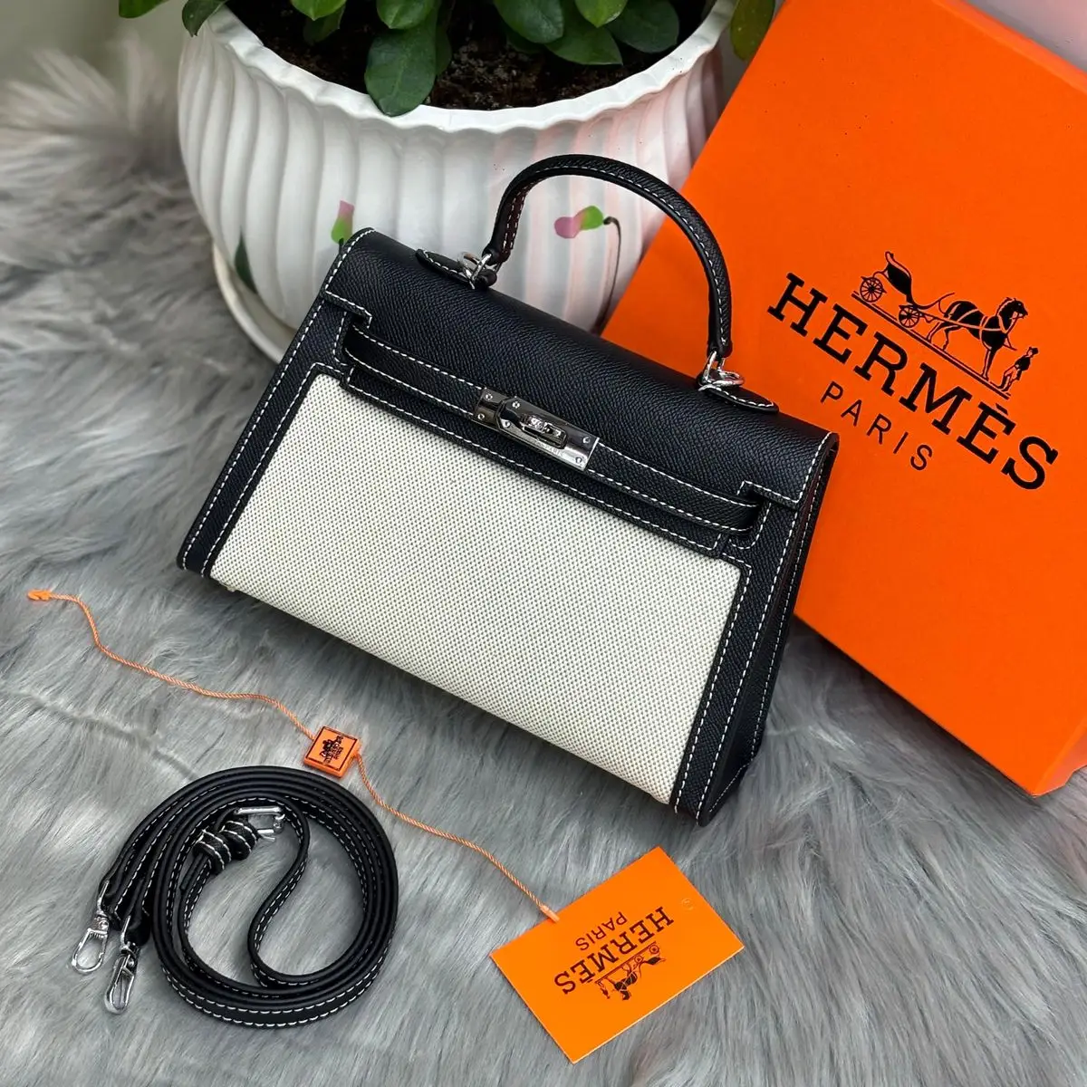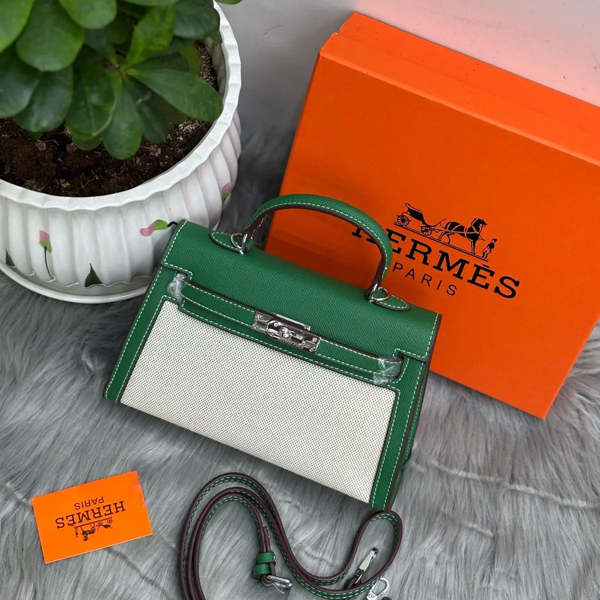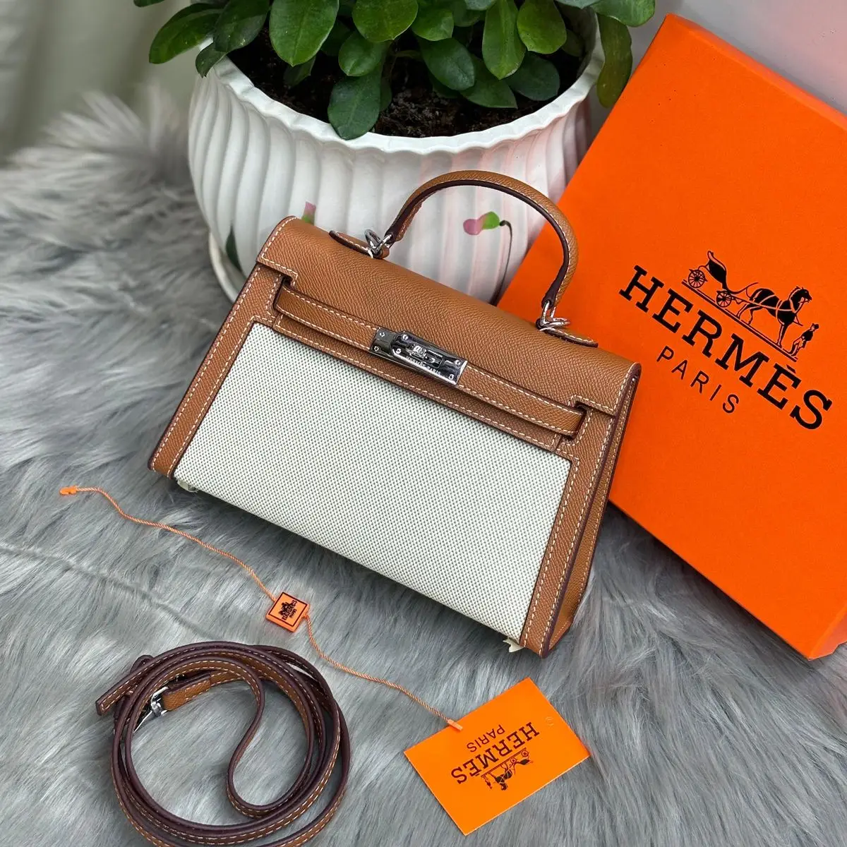 This specific Mini Kelly is instantly recognizable by its proportions, nestled inside Hermès’ signature orange box marked with the “HERMÈS PARIS” logo. The structured Sellier construction, refined leather options (like Epsom or Swift), and gleaming palladium or gold hardware enhance its desirability. Despite its petite size, it delivers major fashion impact and holds strong resale value due to limited availability and high demand among collectors.