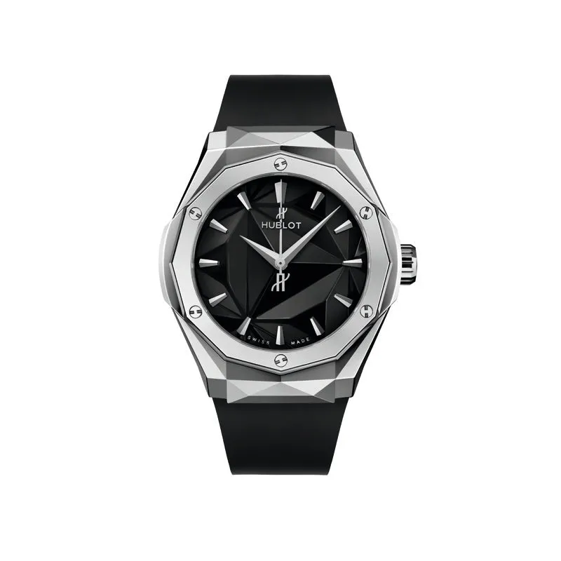 The Hublot Classic Fusion-550.NS.1800.RX.ORL19 is a refined timepiece that embodies the brand’s signature blend of modern elegance and cutting-edge craftsmanship. The 45mm case is crafted from satin-finished and polished titanium, offering a lightweight yet durable construction that ensures both comfort and style. The minimalist black dial features silver-tone hands and hour markers, creating a sleek and understated look, while a date display at 3 o’clock adds practical functionality. Powered by the HUB1110 self-winding movement, this watch delivers precision timekeeping with a 42-hour power reserve, making it a reliable choice for everyday wear.