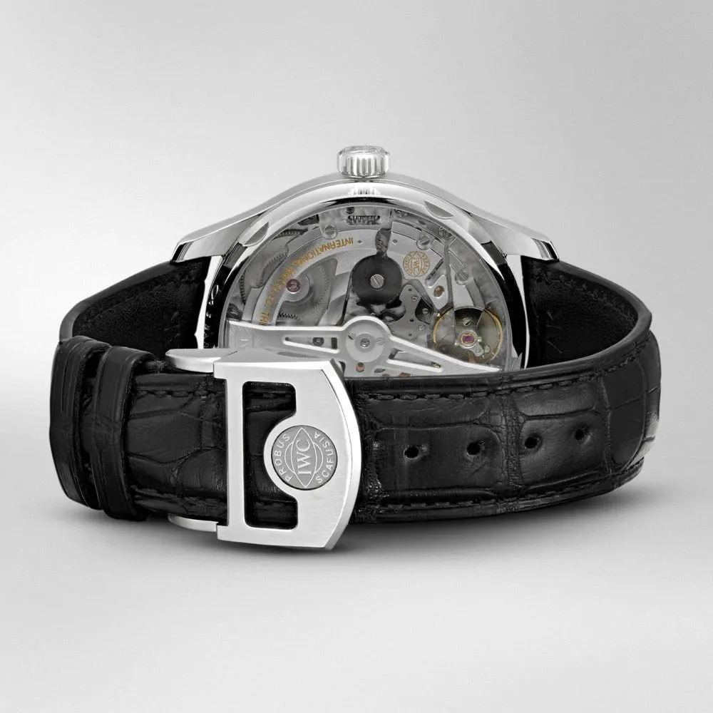 The IWC Portugieser Automatic IW500710 is the perfect timepiece for those who appreciate both tradition and innovation. Its balanced dial layout, robust movement, and 100m water resistance make it a versatile choice for both formal and everyday wear. Paired with a blue alligator leather strap, this watch offers a sophisticated yet contemporary appeal. Whether you’re an experienced collector or seeking a timeless statement piece, the Portugieser Automatic IW500710 is a testament to IWC’s mastery of precision watchmaking, making it a worthy addition to any luxury collection.