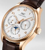The IWC Portugieser Perpetual Calendar 42 IW344202 reflects the brand’s commitment to craftsmanship, with a sapphire crystal case back that offers a view of the intricately finished movement. Paired with a brown alligator leather strap, this watch combines luxury with comfort and versatility. With a water resistance of 30 meters, the watch is suitable for everyday wear, although it’s best to keep it away from water activities. Whether worn for formal events or as an exquisite everyday companion, the IWC Portugieser Perpetual Calendar 42 IW344202 combines precision, elegance, and heritage in one extraordinary timepiece.