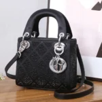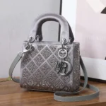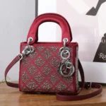 The Lady Dior bags in the image represent one of the most iconic designs in the history of fashion. Originally named “Chouchou,” the bag was famously renamed after Princess Diana, who frequently carried it and helped elevate its status as a symbol of timeless elegance. The Lady Dior is instantly recognizable by its refined structure, elegant top handles, and the geometric “Cannage” topstitching—a hallmark of the Dior aesthetic inspired by Napoleon III chairs used during Dior’s early runway shows.
