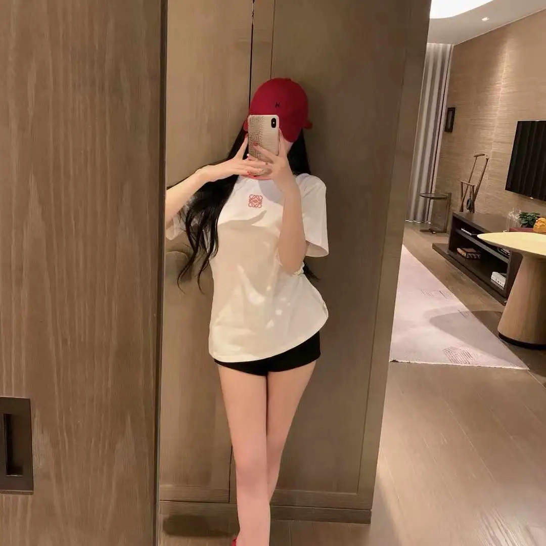 This versatile T-shirt combines minimalist design with bold accents, making it easy to pair with jeans, shorts, or skirts for a chic, modern look. The orange collar trim adds a fresh, sporty vibe, elevating the classic white tee to a statement piece. Ideal for both relaxed and polished casual outfits, this Loewe tee represents understated elegance with a contemporary edge.
