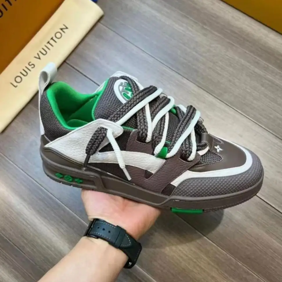 The Louis Vuitton LV Skate Sneaker redefines high-end street style with a bold, retro-inspired silhouette and cutting-edge design. Combining the aesthetics of classic skate shoes with Louis Vuitton’s luxury craftsmanship, this statement sneaker features a layered construction crafted from premium calf leather, suede, and technical mesh. With its chunky profile, intricate paneling, and iconic LV branding, the LV Skate Sneaker brings elevated energy to urban fashion.