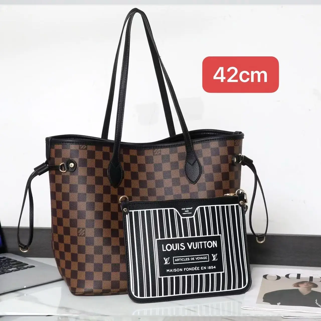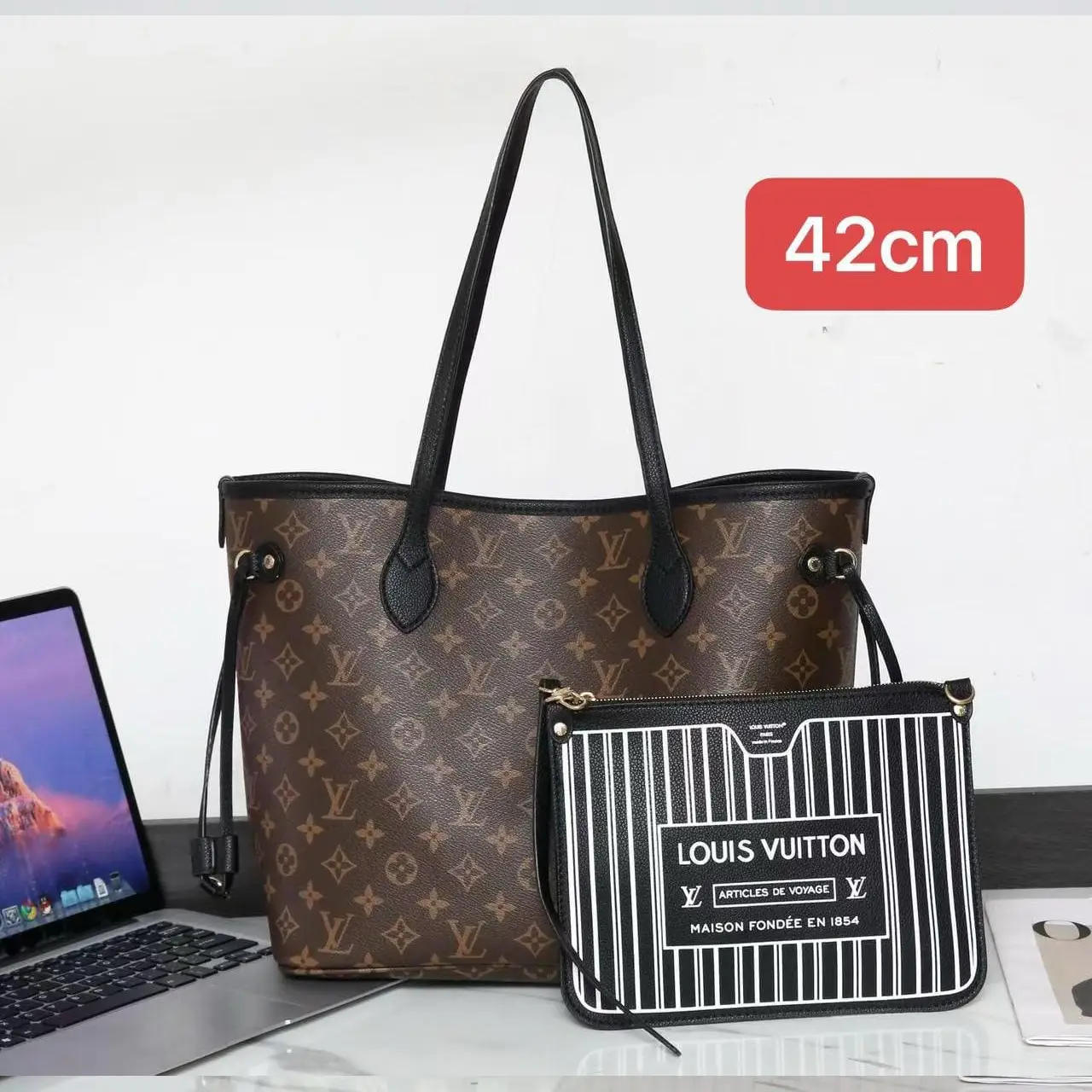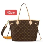 Included with the tote is a detachable zippered pouch adorned with a stylish striped design and the Louis Vuitton logo, along with the inscriptions “ARTICLES DE VOYAGE” and “MAISON FONDÉE EN 1854,” nodding to the brand’s heritage. The pouch can be used as a clutch or extra pocket, enhancing the bag’s functionality. Combining timeless elegance with practical features, the Neverfull GM remains one of Louis Vuitton’s most beloved and versatile bags.