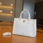 The tote is equipped with two sets of handles—long shoulder straps and short top handles—offering versatile carrying options for comfort and convenience. Whether you prefer a handheld look or an over-the-shoulder style, the OnTheGo adapts seamlessly to your needs. Available in various colors and finishes, this Louis Vuitton bag is more than just an accessory; it’s a statement of luxury and functionality.