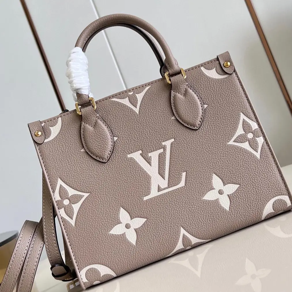 With its rolled-leather top handles and removable, adjustable strap, the OnTheGo PM offers versatile carrying options: by hand, on the shoulder, or as a crossbody. The interior is spacious enough to fit essentials like a mini tablet, wallet, keys, and makeup items. Combining timeless design with practicality, this tote delivers style, function, and iconic Louis Vuitton craftsmanship in one compact silhouette.