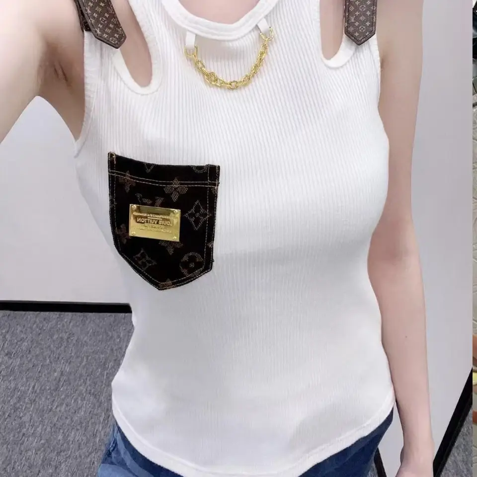 Louis Vuitton Sleeveless Monogram Top with Chest Pocket – Luxury Designer Tee in Dubai UAE