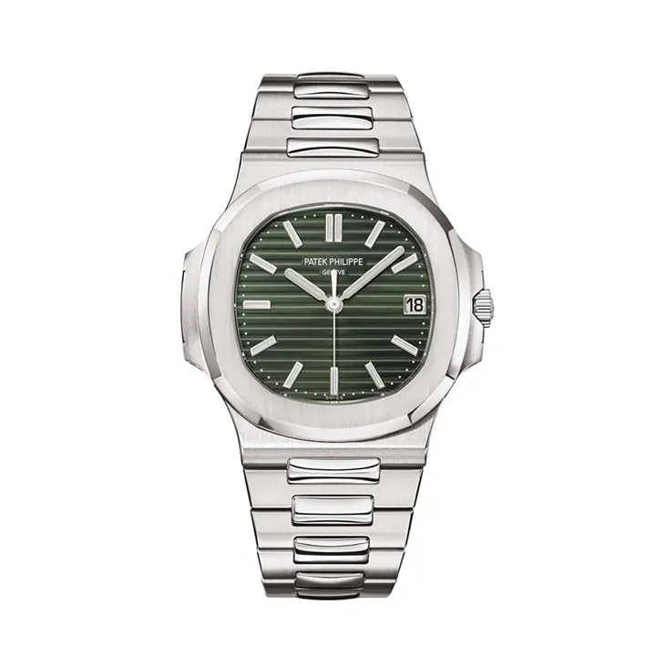 The Patek Philippe 5711/1A Nautilus Green is one of the most coveted and unique variations of the iconic Nautilus collection. The watch features a striking green dial, which has become highly sought after for its rich, captivating hue that offers a refreshing departure from the traditional blue dials that have defined the Nautilus line. The 40mm stainless steel case showcases the signature rounded octagonal bezel and sleek, polished finish, creating a perfect blend of sportiness and luxury. The green sunburst dial catches the light beautifully, transitioning through various shades, while applied hour markers and luminescent hands maintain the watch’s functional elegance. A date window at 3 o’clock completes the dial’s clean, balanced design, ensuring that it remains highly legible while maintaining an air of sophistication.