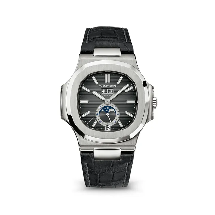 Powering the 5726A Nautilus Black is the Caliber 324 S QA LU 24H/303 automatic movement, which offers a 48-hour power reserve and exceptional precision. The movement’s intricate craftsmanship and robustness are reflected in the watch’s impressive functionality. The stainless steel bracelet with alternating polished and satin finishes complements the case perfectly, providing both comfort and style. With its combination of perpetual calendar complications, sporty design, and Patek Philippe’s meticulous craftsmanship, the 5726A is a standout piece for collectors who appreciate both elegance and mechanical mastery. This model, with its black dial, offers a modern twist on the classic Nautilus, making it a desirable and versatile addition to any luxury watch collection.