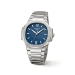 The Patek Philippe 7118/1A Nautilus Blue Opaline is a stunning and refined addition to the iconic Nautilus collection. This ladies’ model features a 35.2mm stainless steel case, with a blue opaline dial that showcases an exquisite sunburst finish. The rich blue hue shifts in the light, giving the watch a dynamic and sophisticated appearance. The dial features white silver applied hour markers and luminescent hands, ensuring excellent legibility while maintaining a sleek, modern aesthetic. The signature horizontal embossed pattern of the Nautilus series adds texture and depth to the dial, reinforcing its distinctive design. A stainless steel bracelet with an integrated design complements the overall look, offering a seamless, polished finish that is both comfortable and stylish.