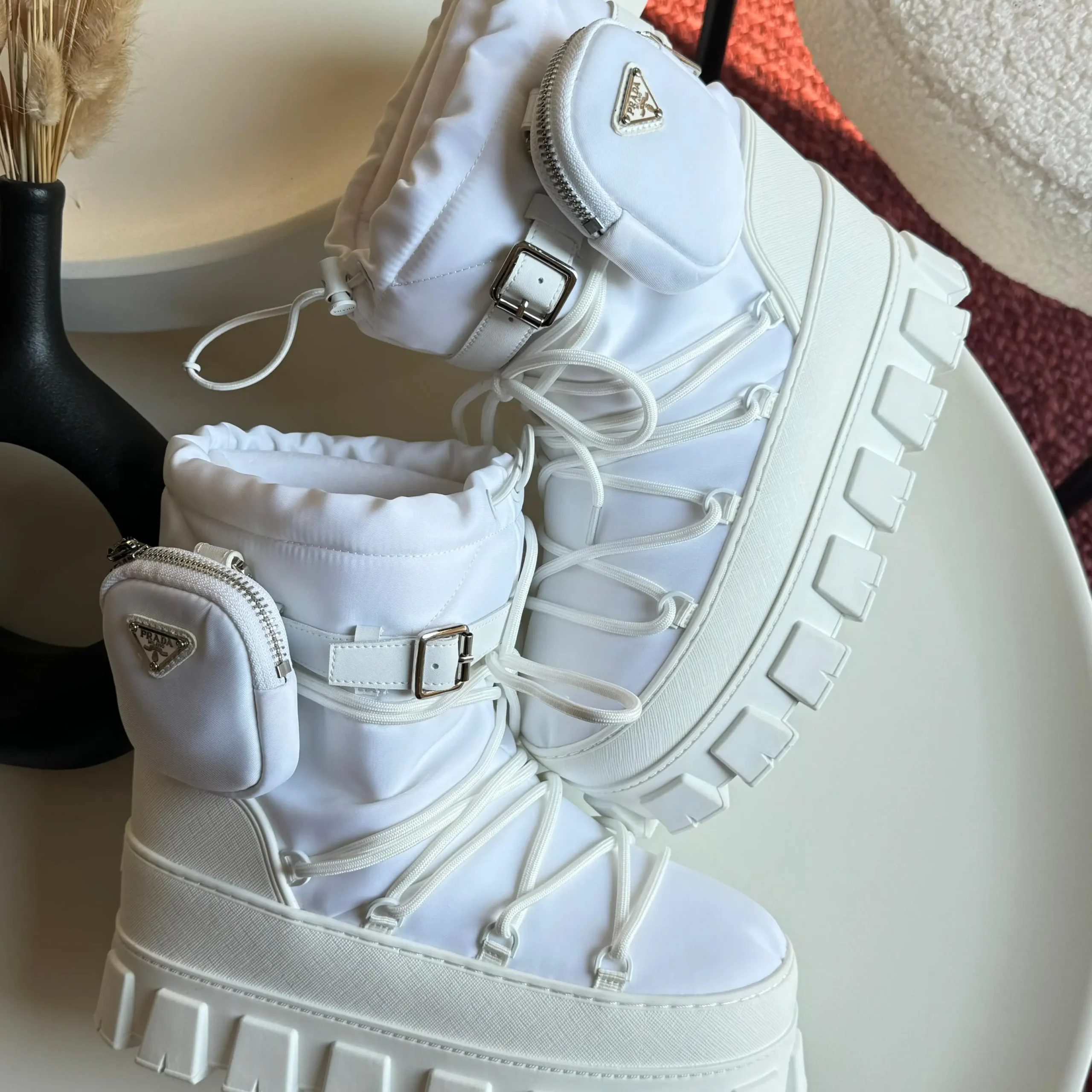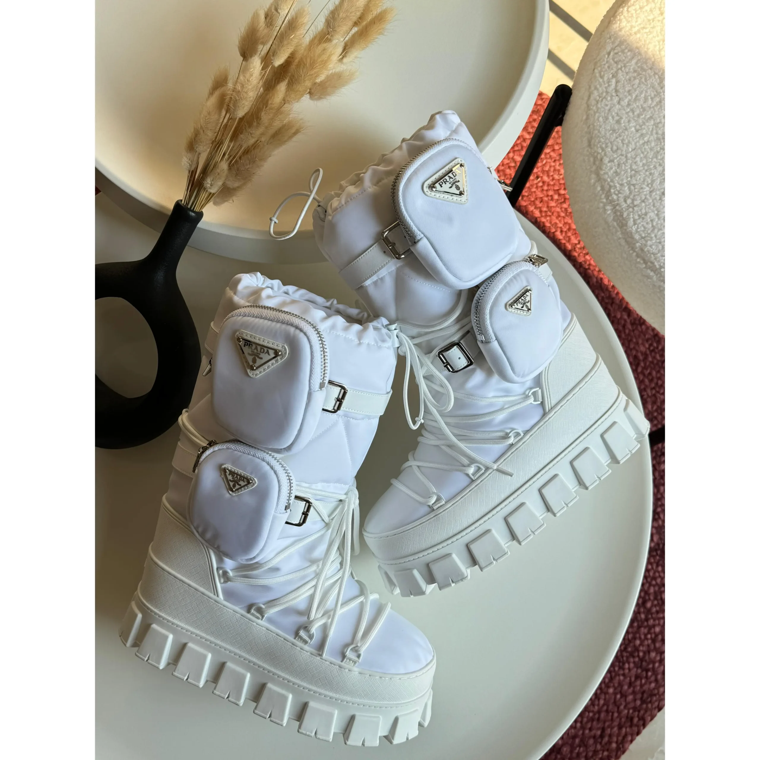 Prada Monolith Winter Boots – Nylon & Rubber Platform Boots with Side Pouches and Lace-Up Design in Dubai UAE