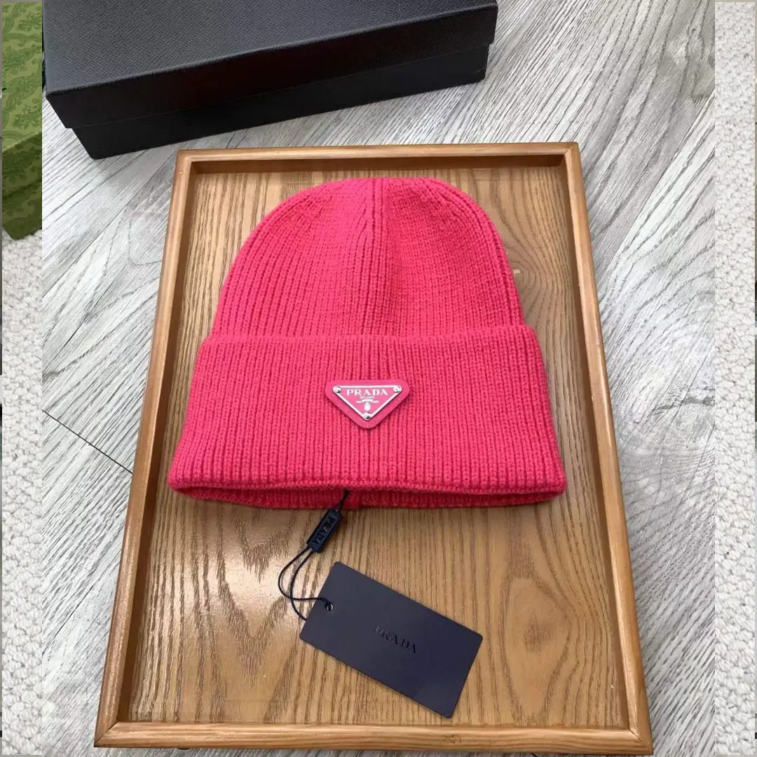 Prada Re-Nylon Wool Blend Beanie Hat with Triangle Logo – Luxury Designer Winter Cap in Dubai UAE
