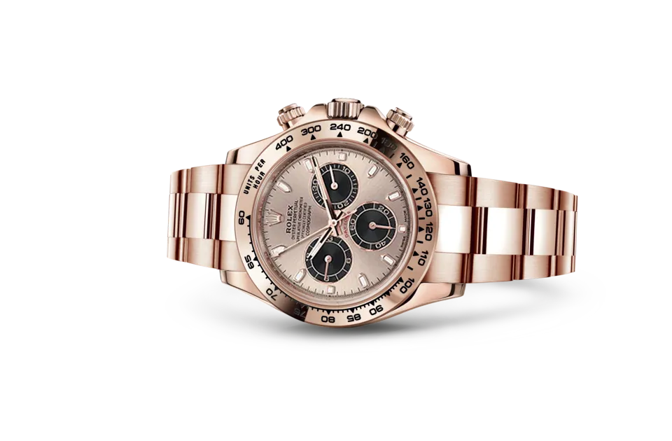 Powering the Rolex Daytona 116505 Sundust & Black is the in-house Caliber 4130 movement, a self-winding mechanical chronograph renowned for its exceptional precision, efficiency, and 72-hour power reserve. The watch is paired with a solid Everose gold Oyster bracelet, featuring an Oysterlock clasp and an Easylink extension system for a secure and adjustable fit. Built with a 100-meter water resistance, this Daytona is as practical as it is luxurious, ensuring durability in various conditions. Whether worn as a statement piece or appreciated for its rich racing legacy, the Rolex 116505 Daytona Sundust & Black is a sophisticated and powerful timepiece that embodies Rolex’s dedication to innovation and elegance.