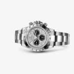 Beneath its striking exterior, the Rolex Daytona 116509 Meteorite houses the Caliber 4130 movement, an in-house self-winding chronograph known for its exceptional precision, smooth chronograph function, and 72-hour power reserve. The watch is paired with a solid white gold Oyster bracelet, featuring an Oysterlock clasp and an Easylink extension system for a secure and adjustable fit. With 100 meters of water resistance, this timepiece is designed for reliability in any situation while maintaining its luxurious status. Whether appreciated for its celestial dial, cutting-edge movement, or refined aesthetics, the Rolex 116509 Daytona Meteorite stands as a rare and prestigious symbol of Rolex’s mastery in both craftsmanship and innovation.