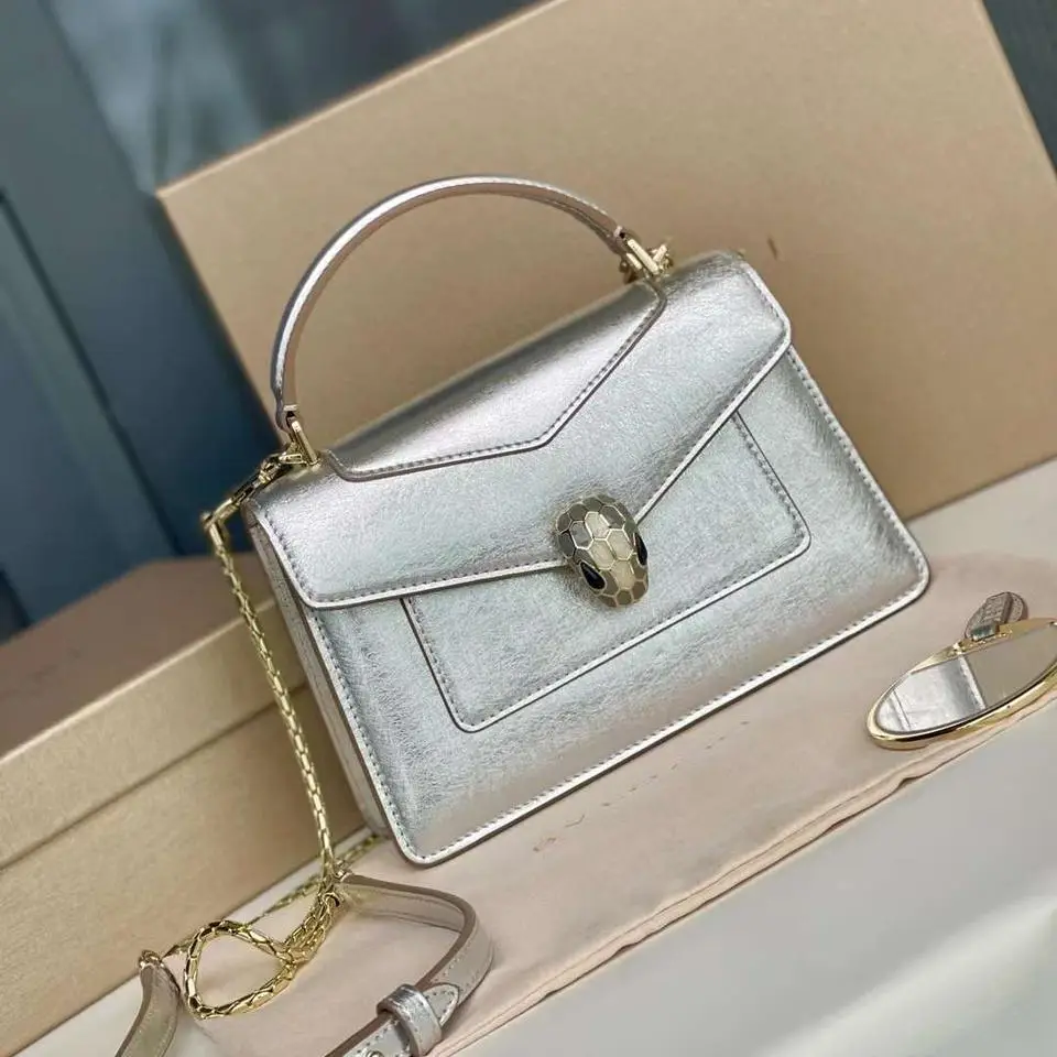 The Serpenti Forever Mini Top Handle Bag is a signature masterpiece from Bulgari’s coveted Serpenti collection, fusing classic Italian craftsmanship with contemporary allure. Its compact silhouette, adorned with the iconic snakehead closure, symbolizes seduction, transformation, and power. Crafted from premium materials like calf leather or exotic skins, this mini bag is as versatile as it is striking—perfect for elevating both daytime chic and evening glam looks. With a detachable chain strap and structured top handle, it offers multiple styling options for the modern luxury lover.