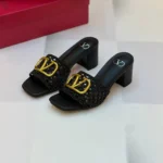 Valentino Garavani VLogo Signature Slides – Black Woven Block-Heel Sandals with Logo in Dubai UAE