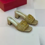 Chic, structured, and unmistakably Valentino—the Valentino Garavani VLogo Signature Slides offer the perfect balance of elegance and everyday luxury. These sophisticated slides feature a black woven upper that brings rich texture to the minimalist silhouette, while the bold gold-tone VLogo emblem adds a polished designer statement across the strap. Set on a comfortable block heel, these sandals are ideal for elevating both casual and refined looks.